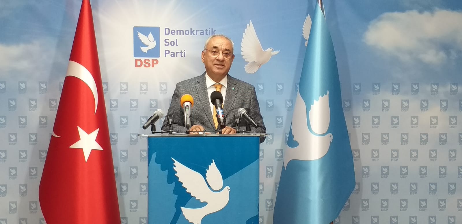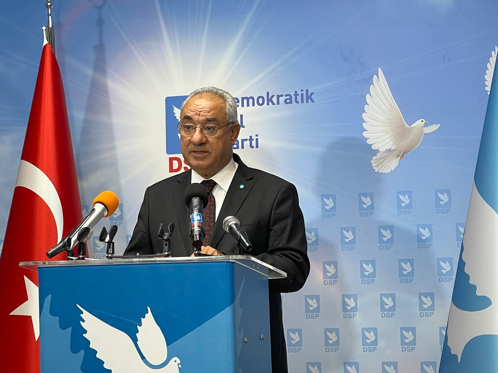 DSP Genel Başkanı Aksakal haftalık basın toplantısında konuştu.